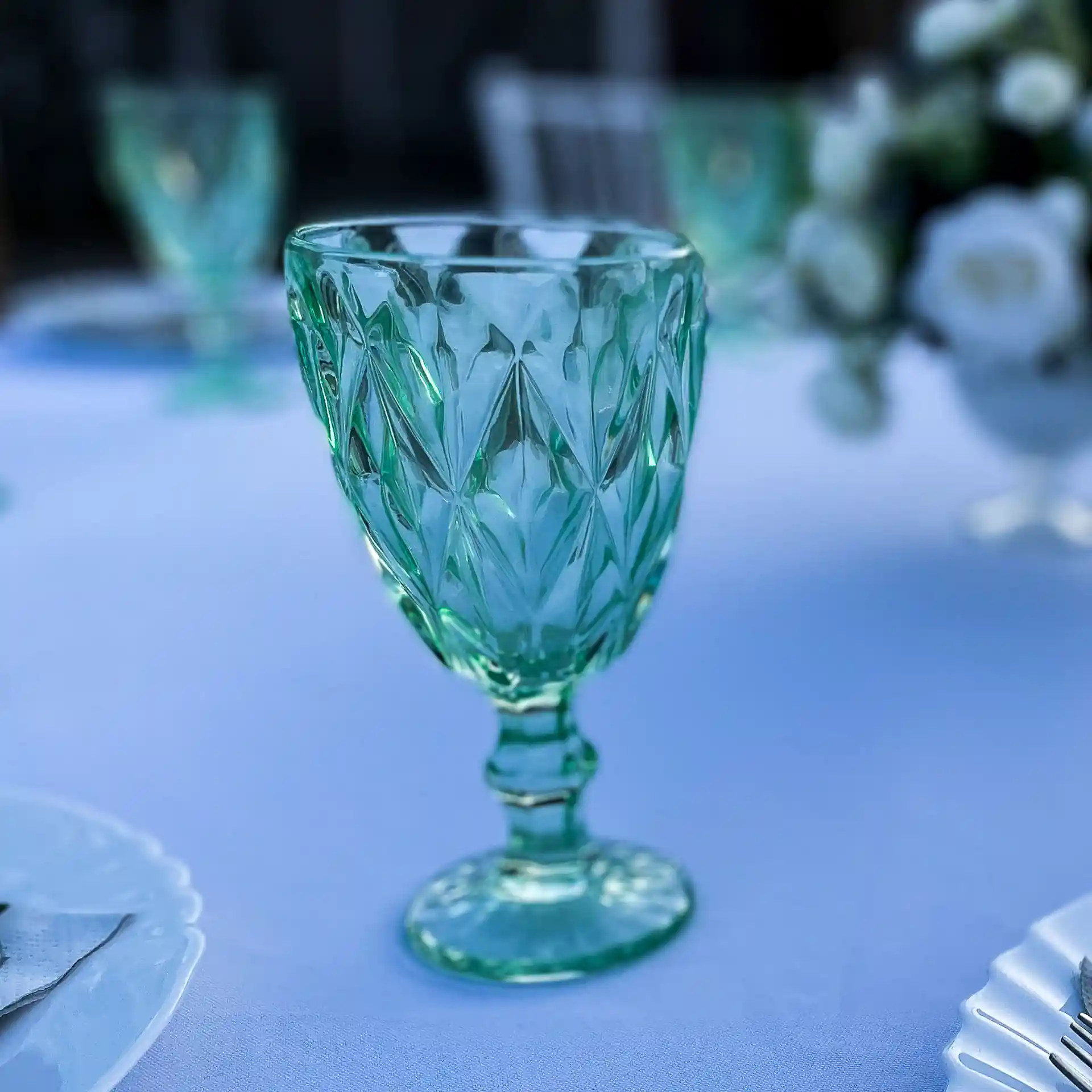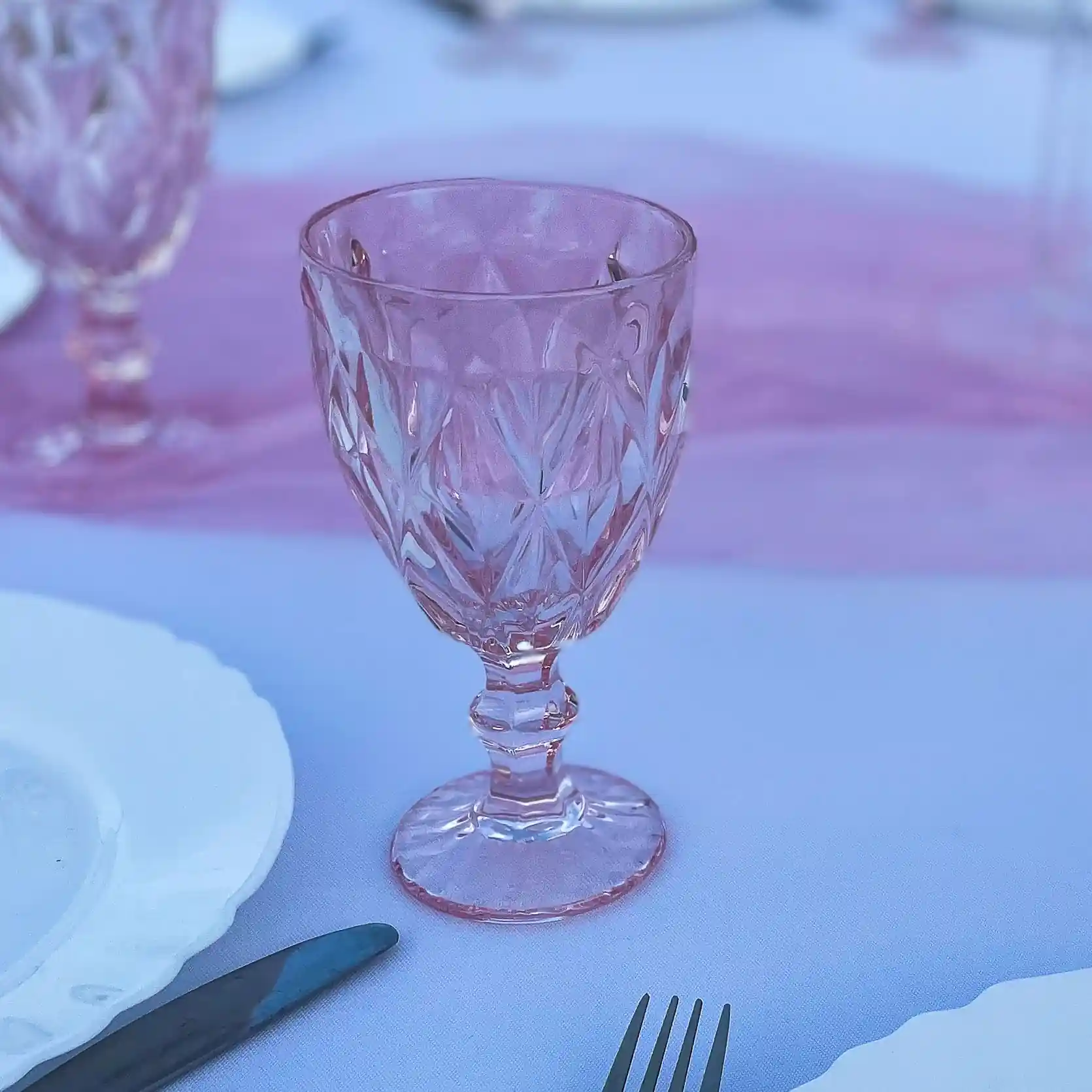 Naša kolekcija kristalnih čaša obuhvata modele za šampanjac, vino i vodu, dostupne u istim bojama kao i naši stolnjaci: crna, žuta, crvena, bela, plava, ciklama, narandžasta, zelena, ljubičasta i roze. Kristalne čaše iz naše ponude odišu posebnim sjajem i elegancijom. One pružaju luksuzan izgled svakoj svečanoj postavci. Sve čaše možete lako kombinovati sa našim stolnjacima, escajgom i ostalim priborom za sto. Tako postižite savršenu harmoniju boja i stila na Vašem događaju.